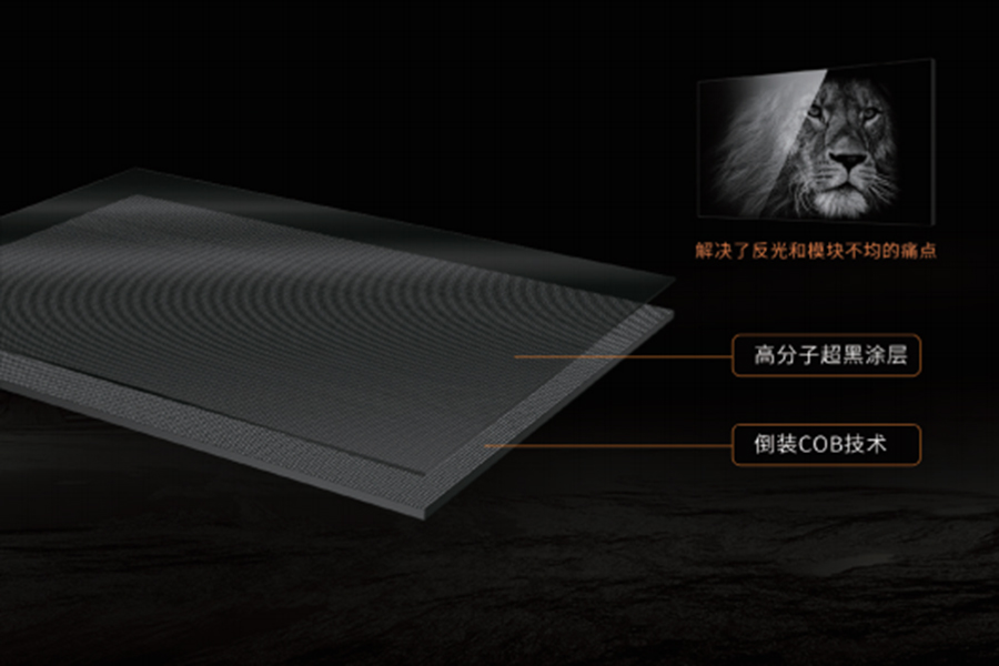 ② 倒裝COB技術(shù),重新定義畫質(zhì):基于倒裝COB技術(shù),屏幕表面采用高分子材料墨色涂層,帶來(lái)令人驚艷的對(duì)比度和黑色一致性。同時(shí)解決了屏幕表面反光和模塊化明顯的痛點(diǎn),圖像細(xì)節(jié)纖毫畢現(xiàn),畫面栩栩如生。