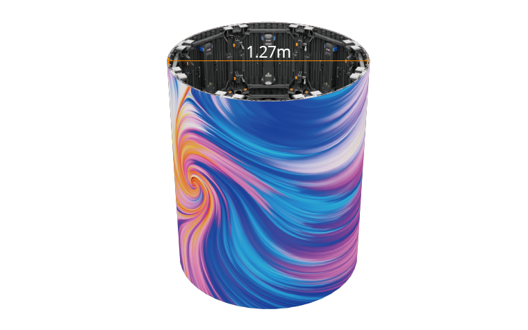⑤ 完美圓弧直角,轉角半徑更小:將FL系列2列箱體的角度調整成-45°后連接在一起,即可打造出90°圓弧直角,兩側建議拼接NT系列直屏,以節約購屏成本。當與NT系列互拼時,只需向互拼屏發送一個配置文件即可,互拼屏顯示一致性效果更佳。