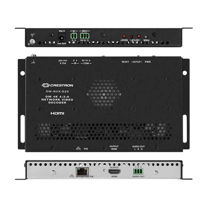 DM-NVX-D20 是一款緊湊型AV-over-IP解碼器,設(shè)計(jì)用于通過(guò)標(biāo)準(zhǔn)千兆以太網(wǎng)接收分辨率高達(dá)4K60 4:2:0的視頻。DM-NVX-D20具有基于Web的安全控制和管理、HDMI輸出、模擬音頻輸出、AES67發(fā)射和接收功能以及支持PoE的銅質(zhì)以太網(wǎng)連接,提供解碼器解決方案,可在任何規(guī)模的DM NVX網(wǎng)絡(luò)視音頻安裝中提供價(jià)格和性能優(yōu)化。