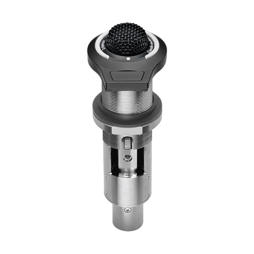 ① 嵌入式安裝的話筒插座,適用于 AT846C / AT846O 界面話筒或任何使用3針卡農公頭輸出的21mm鵝頸式幻象供電話筒。